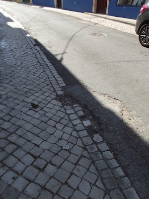 As ruas secundárias, as que estão escondidas, essas ficam para as calendas gregas como é o caso desta Rua das Freiras onde as pedras da calçada vão-se soltando à medida que o tempo passa e se vão acumulando junto à parede de uma habitação. E escusado será dizer que o buraco, esse nem sinalizado está. Mas há muitos outros casos.